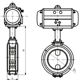 DN | L | H | 1.0MPa | 1.6MPa | 氣動執(zhí)行器 (雙作用) | ||||