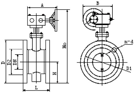 | DN | D | D1 | D2 | H | L | A | H0 | n-d |